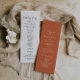 Det här botaniska höstbröllopsprogrammet är perfekt för ett orustiskt bröllop. Utformningen har ett vackert kalligrafteckensnitt i vitt.