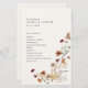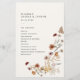 Fyll i ditt "bröllop"-kontor med ett vackert ceremonieprogram, med elegant vattenfärgade vilda blommor i varmt höst färger för att göra din bröllopsdag enklare och elegant. Anpassa den omvända sidan om du vill visa medlemmarna i bröllopsfesten.