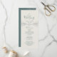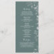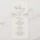 Elegant, boho, vildblomma, botaniskt bröllopsprogram, grönt med silver-rep hjärta och vintage guldad blommigt snöre.