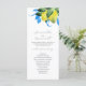 Det botaniska bröllopsprogrammet visar pulserande vattenfärgscitroner i gultens nyanser, kompletterade med lush blue och grönt lövs. Namn i bruden och trippen, tillsammans med tidslinjen bröllop, visas elegant i en blandning av handskrivna skript och sans serif-typografi. Baksidan har en solid Mykonos-blått som skapar en slående kontrast. Denna dubbla-sidade utformning är perfekt för Medelhavsområdet, Toskana, Italien och grekiska Alfresco bröllop. Konst och design av Victoria Grigaliunas från Do tell A Belle. Läs mer om det här bröllop-temat på www.zazzle.com/dotellabelle.