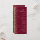 Det moderna bröllopsprogrammets lämnat kant i eleganten har en guld faux glitter-utformning. Anpassadet kombinerar handskrift, rityta och kursivt typsnitt i blek guld-färgad med en burgundröd bakgrund.
