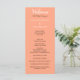 Välkomna gästerna i bröllop med färsk fruktinspirerad kantaloupe-bakgrund i moderna bröllopsprogram med vit och svart text. Anpassa fram och tillbaka med briden och brudgummens ceremonier till kostym dina behov. Designad för sex brudgummar och marskalkar namn. Om du har en mindre bröllopsfest tar du helt enkelt bort extra-brickor och rader med marskalkar som inte behövs och tar bort mellanrum mellan rubriker genom att klicka på borttagningsknappen för att flytta radavstånd till enhetlighetsavstånd för behållor. Om du lägger till fler än sex personer i var och en av dessa måste du klicka på Anpassa för att minska storleka för teckensnitt. Ursprunglig design av TamiraZDesign.