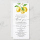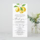 Vårt tematkort för bröllopsprogram är perfekten till att behålla gästerna informerade och engagerade vid ceremonin i bröllop. Den ljusa och trevliga citronkonstruktionen är perfekt för sommartid i bröllop, och elegantens typografi tillför en aning sofistikering. Citronmotivet tillför en liten bit charm från stollig och skapar detta programkort som ett vackert och praktiskt tillägg till din bröllop-deka.