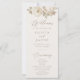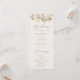 bröllopsprogram av blommigt i elegant med vintage som har en överkant gräns av vattenblommor och löv i varma neutralter av vitt, beige, elfenben, guld och brunt. Blommigten av neutralt kompletteras av ett modernt kalligrafiskt skript. Anpassa framsidan av boho-bröllopsprogrammet med namn, bröllop-datum och -plats, och ordning för ceremonin. Visningen återgår till en lista över bröllopsfesten. Designad för samordning med vår insamling av Elegant Vintage Blommigt bröllop.