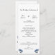 Det här bröllopsprogrammet är en tidlös blandning av elegans och charm, vackert dekorerad med Delft blå tulpaner i ömtålig vattenfärg. Den tunna blommigten, inspirerad av klassisk nederländsk porslin, har snygga tulpaner i blå och vita nyanser som skapar en sofistikerad men romantisk estetik. Parets uppgifter om namn och bröllop visas elegant i en blandning av parisiskt och nioptialt typsnitt, vilket garanterar tydlighet samtidigt som man bibehåller ett finkänsligt drag. Detta program fungerar både som en praktisk guide till ceremonin och som en omhuldad keepé för gästerna, som kompletterar ett tema utan tidsbegränsning och elegant bröllop.