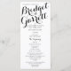 Svart och vit textdesign, utskrivet rackkort bröllopsprogram ändrar färg på texten som det ska.