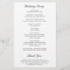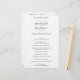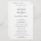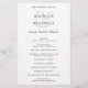bröllopsprogram för svart och vitt elegant med en enkel och minimal utformning med ett stort mellanrum bakom namnen av bruden och trimningen i ett traditionellt serif-teckensnitt. Ett klassiskt val som är perfekt för ett formellt bröllop.