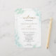 Elegant bröllop-program med delikat vattenfärgsbakgrund i turkos, akvarier, dammblått och mjuk grönt. I guld finns detaljer i spöken och i modern handskriven kalligrafi. Möjlighet att göra textändringar och justeringar genom att välja att anpassa ytterligare. Framåt med ceremonin i bröllop, tillbaka med bröllopsfest namn och tack för ert budskap till gästerna. Elegant modern känsla. Finns även med samma bakgrund och grönt innehåll. En del av vår insamling av "Airy Blue and Grönt Watercolor" med olika samordningsprodukter tillgängliga.
