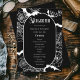 Bygg upp förtjusningen med det här bröllopsprogrammet, perfekt för ett Halloween bröllop. Denna moderna, elegant-design kombinerar en bioestetisk mörk med en moody, spooky vibe, som fångar kärnan av ett firande i oktober. Intrikalt adorberat med motiven för fladdermus och spindelnät, vid sidan av den ömtåliga blommigten inslag, visar det här bröllopsprogrammet en slående svartvit palett för färg. Ange tonen för din speciella dag med en unik blandning av hemlig skönhet och elegans.