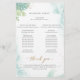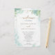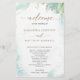 Elegant bröllop-program med delikat vattenfärgad bakgrund och höggrönt i turkos, akvarier, dammblått och mjuk grönt. Guld i löv, spektrum och modern handskriven kalligrafi. Möjlighet att göra textändringar och justeringar genom att välja att anpassa ytterligare. Framåt med ceremonin i bröllop, tillbaka med bröllopsfest namn och tack för ert budskap till gästerna. Elegant modern känsla. Finns även utan grönsaksdetaljer men med vattenfärgsfläckar på bakgrunden. En del av vår insamling av "Airy Blue and Grönt Watercolor" med olika samordningsprodukter tillgängliga.