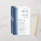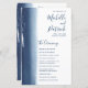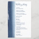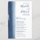 Modern bröllopsprogram och kreativ med en enkel design med en marin blå vattenfärgsborstlinje på den lämnat sidan, över en vit bakgrund. Lägg till dina ceremonier längst fram och din bröllopsfest längst bak. Den här unika designen är underbar för ett konstnärligt par. Dessa bröllopsprogram i billigten trycks på lakan av papper för ett budgetvänligt alternativ.