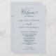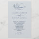 Elegant silver med marint blått Bröllopsprogram med vackra, handskrivna kalligrafdetaljer. Framåt med ceremonin i bröllop, tillbaka med bröllopsfest namn och tack för ert budskap till gästerna. Lägg till dina uppgifter med hjälp av malltextrutorna och om det behövs kan du välja Redigera med verktyg (med knappen i slutet av malltextrutorna) och ändra textens placering, storlekt eller till och med stil för att passa dina uppgifter bäst. Den här designen i en silver färg-bakgrund och text i en marin blå ton.