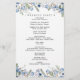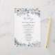 Det här elegant bröllop-programmet från vår Dusty Blue Pressed Blommigt-samling har söta blommigtar med vattenfärg med känsliga gröna vindruvor, parade med ett modernt typsnitt. Perfekt för alla säsonger. Om du vill göra avancerade ändringar väljer du Anpassa -> Redigera med Design verktyg.