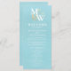 Bröllopsprogrammet elegant Sea Glass Teal Monogram