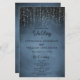 Skapa ett program för anpassningsbar till bröllop. Det här halvljusprogrammet i lakan illustrerar en elegant mousserande sträng ljus som ställs in mot en denim blue till marinblå färgad bakgrund. Det är redo att anpassa med all information om bröllop i elegant svart text.
