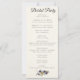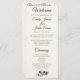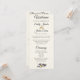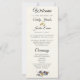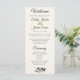 Bröllopsprogrammet har en olivdesign på framsidan. Elegantens olivmotiv i kombination med gröntens bladverk och oliver fångar upp en tidlös Medelhavscharm. Anpassa programmet genom att lägga till din, namn, information om ceremonin och brudens sida för en personlig kontakt.