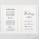 Det här programmet är en 8,5 x 11-sida som kräver att du viker ihop den. Guld gräns är en fast sten färg. Klassiskt underskattat svart-vitt bröllopsprogram med en modern beröring som innehåller eleganten av ord "Bröllop" på ytterhöljet och guld gräns.