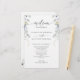 Välkomna gästerna till ceremonin med det här elegant bröllop-programmet med modern handskriven kalligrafi och exquisite water grey och blommigt information. Möjlighet att göra textändringar och justeringar genom att välja "anpassa ytterligare". Framåt med ceremonin i bröllop, tillbaka med bröllopsfest namn och tack för ert budskap till gästerna. Grey och blommigt i en vacker blandning av vita, blå och grönt nyanser. Elegant och modern känsla. En del av vår "Elegant Bliss"-samling med en mängd olika koordinerande inbjudningar, inmatningskort, OSA kort, tillbehör för utskick, spara datumen, tack vare kort och händelsemärkecken och produkter.