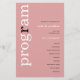 Enkelt Bröllopsprogram för Dusty Ro-text. En budgetpris storlek på 5,5 x 8,5 tum på en elegant på 110 lb LINEN lagrar - för en lyxkänsla till underbart värde är detta perfekt för menyer, inbjudningar och program osv. Detta storleka budgetalternativ finns också tillgängligt i andra pappra val. SEMI-GLOSS 110 lb-kortet lagrar har ungefär samma tjocklek som ett vykort, så fungerar också bra för inbjudningar. FELT 100 lbs papper är en färgad, INTE vit, vilket ger en kraftig tryckning. MATTE 80 lbs pappra lagrar är ljust vitt, för skarp utskrift, underbart för dina menyer och program, medan SATIN 80 lbs papper är tunt och lätt En modern typografisk design med programmet i stor typografi i vitt med "r" i svart, roterad och till lämnat sida på en baksida av dammig ro rosa.
