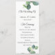 Bröllopsprogram av eucalyptus foliage i rustisk chic. Anpassa teckensnittet stil, färg och storlekt.