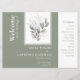 Ett tvåsidigt, platt bröllopsprogram i elegant - en grönt och vit i färg med vackra eukalyptus-löv som är lätta att uppdatera.
