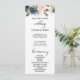 Detta krävande bröllopsprogram för fallande blommigt är perfekt för ett tropiskt bröllop. Utformningen skildrar handritade , mörk blått och marina vitmiblommor, inspirerande elegans, klass och naturskönhet.