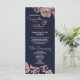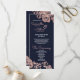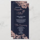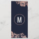 Elegant, chic och enkel, modern utskrift av blommor och typografi i ro guld på den moderna marinblå bakgrunden, bröllopsprogram kort. Denna klassiska och sofistikerade utformning är perfekt för det trendig och det snyggt som gifter sig. Anpassa med ditt eget meddelande på framsidan och en anpassad inledande monogram på baksidan. All fotoutskriftsdesign.