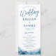 Det här Bröllopsprogrammet för havsfärg är perfekt för att visning detaljerna för din speciella dag. Den blå vattenfärgsdesignen liknar oceanen vågar för ett badbröllop på stranden.