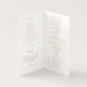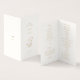 Elegant, färsk och modern. Detta vackra och snyggt bröllop-vikande kort har en söt, handdragen bukett och en contemporary av typsnitt i en mjuk faux guld, mot en lätt elfenbensbakgrund. Omfattar ceremoni, bröllopsfest och tidslinjelistor samt ett litet tack från paret. Det finns varianter av den här designen i samlingen.
