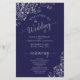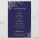 Dessa bröllopsprogram är eleganter och smakfulla, samtidigt som de fortfarande är budgetvänliga. Konstruktionsfunktionerna ornerar silver grått faux foil snöre med blek grått text på en marin blå färgad bakgrund. Typografin har gammalt manusyrgrafi, och det finns utrymme för detaljer om ceremonin, brudens sida, och ett kort-tack.