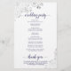Dessa bröllopsprogram är eleganter och smakfulla, samtidigt som de fortfarande är budgetvänliga. Utformningsfunktionerna anger silver grått faux foil snöre med marin blå text på vit bakgrund. Typografin har gammalt manusyrgrafi, och det finns utrymme för detaljer om ceremonin, brudens sida, och ett kort-tack.