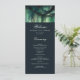 En vit vattenfärgsillustration av lush foliage i emerald grönt, som är full med fairy ljus och magiskt damm, dekorerar detta vår sommarstuvkort med ett förtrollat skogstema. En elegant, en modern bröllop-meny för ett sagolikt bröllop. Perfekt för brider som kärlek den sagda skogsmiljön, den älvskog eller den älvträdgårdsTemat och grönten emerald.