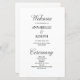 Vi presenterar vårt minimalistiska bröllopsprogram i klassrummen som kommer att göra er speciella dag mer sofistikerad. Med elegantens svarta skript och klassiska bokstäver på vit bakgrund är det perfekt för formellt bröllop. Dessutom kan du anpassa färgen på text och bakgrund så att den stämmer överens med ditt tema och med bröllop. Skapa bröllop du drömmer om och skapa påstående med vår klassminimalistiska utformning. Beställ din dag och gör din stora dag ännu speciellare!