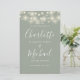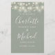 Sage grönt namnteckning skript-bröllopsprogram med söt string ljus och chic modern typografi. Bröllopsprogrammet snyggt kan vara personlig med speciell bröllopsdag. Designad av Thisisnotme©