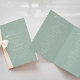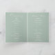 Detta grönt vita kalligrafbildade bröllopsprogram är perfekt för ett orustiskt bröllop. Den enkla utformningen och utformningen av snyggten har skripttypografin klassisk och finare i gröntens bakgrund. Inkludera ett citattecken eller ett kort-meddelande, serviceordning, bröllopsfest och tackmeddelande.