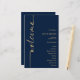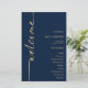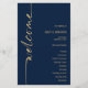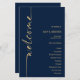 BUDGETENS Elegant Kalligraphy Navy Blue and Guld Bröllopsprogram. En budgetpris storlek 5,5 x 8,5 tum, en modern typografisk design med välkomstskript och roterad.