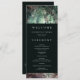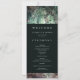 En vit vattenfärgsillustration av lush foliage i den framväxande grönten och mauve och lila, gnidig med fairy ljus och magiskt damm, dekorerar det här vår sommar-bröllopsprogramkortet med ett förändrad skogstema. Perfekt för brider som kärlek den sagda skogsmiljön, den älvskog eller den älvträdgårdsTemat och framkallar grönt, mauve och guld.
