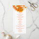 Laddning av bröllopsprogram i orange och vitt med löv från apel.