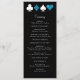 Elegant är lätt att personlig på det här svarta, chic, smala-formatet, Vegas-bröllopsprogrammet. Svartvitt känner sig sofistikerat när det accentueras med turkosblått glitter och vitt kort kostym.
