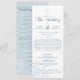 Fira din stora dag i stil med en fantastisk Blek Light Blue-Bröllopsprogram! Fånga skönheten i ditt speciella firande med den här inbjudan. Elegantens manus och dess känsliga blommigt kommer att ge bröllop ett tips om den magiska säsongen i vår och uppskattas i åratal till kom.