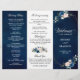 Eleganten och den moderna blommigten bröllop Tri-fold-programmet har en bukett av vattenfärgsfärgat ro i nyans av marinblått, dammig rosa, spage med lush grönt botaniskt löv och eukalyptus. Hitta fler matchande utformningar och variationer från min "blissweddingpaperie"-butik. Och kontakta mig gärna för ytterligare anpassning eller matchning av objekt.