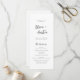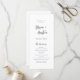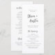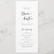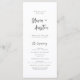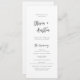 Modern minimalistisk bröllopsprogram har handskript och snyggt sans serif-teckensnittsdetaljer, i svart och vitt färg, enkelt och elegant. Underbar för det moderna klassiska bröllop, rent formellt bröllop, elegant minimalistiskt bröllop. Visa alla matchande biet i samlingen.