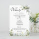 Det här bröllopsprogrammet har en elegant med ett modernt och vackert kalligrafiskt skript med vanlig text tillsammans med en vattenfärg som eukalyptus greer foliage löv arrangemang. Gör det med din egen bild på baksidan och wow din gäst. Du kan anpassa texten och anpassa par namn, datum och plats tillsammans med programinformation. Obs! Det går inte att ändra, redigera eller ta bort det gröna löven arrangemangt tillsammans med teckningen. Du kan bara ändra färg i elegantens kalligrafiformuleringar av "Bröllop", "Ceremonin", "Tack" och "Bröllopsfesten" och teckningarna i bröllop ring. Du kan anpassa programmet ändå.