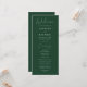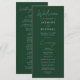 Skapa ett bestående intryck med vårt vackert designade bröllopsprogram, med ett handskrivet, vitt skript i chicen på en bakgrund av jägare-grönten. Perfekt för det moderna bröllop är detta program inte bara snyggt utan också ett mycket stort anpassade. Lägg till en personlig beröring genom att inkludera namn, bröllop-datum, plats och en detaljerad händelseordning. Du kan också rikta uppmärksamheten på din bröllopsfest och se till att dina gäster är välinformerade och känner sig anslutna till din speciella dag. Designat med enkelhet och elegans i åtanke kompletterar bröllopsprogrammet alla bröllop-teman samtidigt som man bibehåller en contemporary, ren estetik. Gör din bröllopsdag verkligt minnesvärd med ett program som kombinerar sofistikering med personlig detaljrikedom.