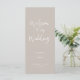 Bröllopsprogram med ett modernt, handskrivet calligraphy-skript i neutralten taupe beige, anpassa baksidan med egen information.