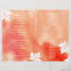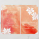 Modern abstrakt vattenfärgsceremoni i persikofärgerna bröllop och party-vikt program med en handmålad vattenfärg i stänk med struktur i ton av korall orange och persika, kapla löv i vitt med korallvener och vit text. Den här avslappnaden för elegant och snyggt i bröllop är en perfekt för hela anpassadet för vår, sommar eller fall/höst bröllop. Du måste lägga den i mitten. Välj endast den här typen av pappert värde när det viks väl. Observera att detta bara är en vattenfärgsbild och inte en riktig struktur.
