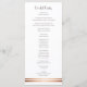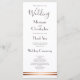 Ett modernt vitt bröllopsprogram i elegant med två koppar/ro guld rand vid kortets grund. Tack vare Ceremony och bröllop har vi tagit upp frågan på programmets framsida, medan hela brudens sida har tagits med på baksidan.