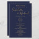 Ett elegant guld och ett marint blått bröllopsprogram med namnteckning av stil namn. Designad av Thisisnotme©