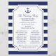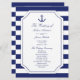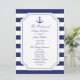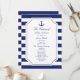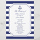 Perfekt för det nautiska tema bröllop har det här programkortet en klassisk marin blå ankare med rep och en blå och vit strimlad bakgrund. På kortets framsida finns namn på bruden och brudgummen, platsen för ceremonin och en lista över ceremonin i bröllop. På baksidan av kortet finns namnen för föräldrarna, tjänstemannen och brudens sida, som alla kan vara personlig.