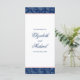 Elegant rosa och marint blått bröllopsprogram. Med en modern damm i mönster. Anpassa enkelt för din bröllopsdag.